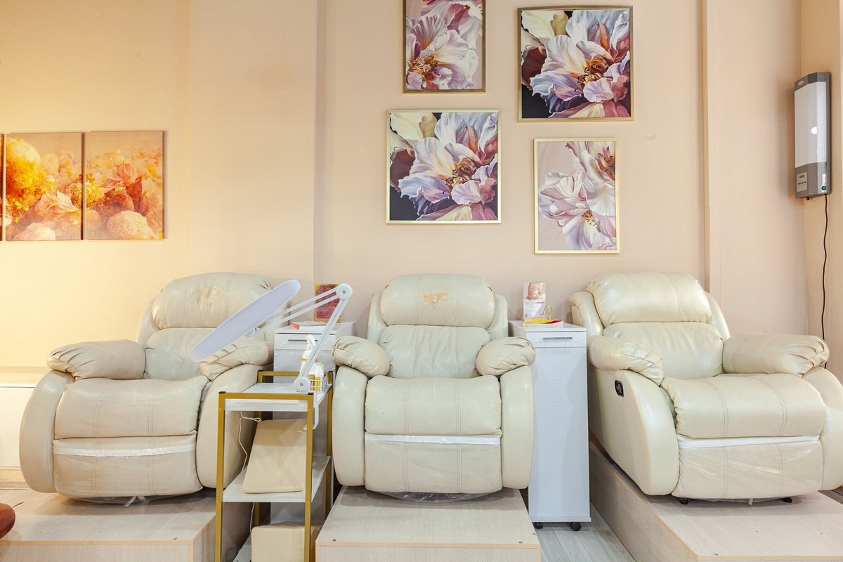 Также к услугам наших посетителей массаж лица, эпиляция, косметология, обертывания, мезотерапия, ботокс, макияж, коррекция формы бровей, окрашивание ресниц, укладка волос, свадебные прически, свадебный макияж, аппаратный и традиционный педикюр.